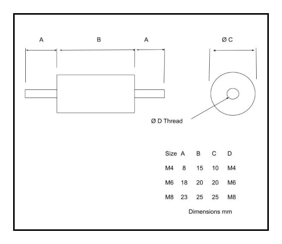 4 Anti vibration mounts with male stud at end.