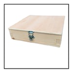 The wooden box with a hinged lid and catch is a practical and stylish storage solution for any home or garage. Crafted from wood, this unpainted box features dimensions of 8 inches in height, 12 inches in length, and 12 inches in width. The lid catch adds an extra element of security, making it perfect for storing small items or valuables. With its rustic charm and durable construction, this wooden box is a versatile and timeless addition to any room.